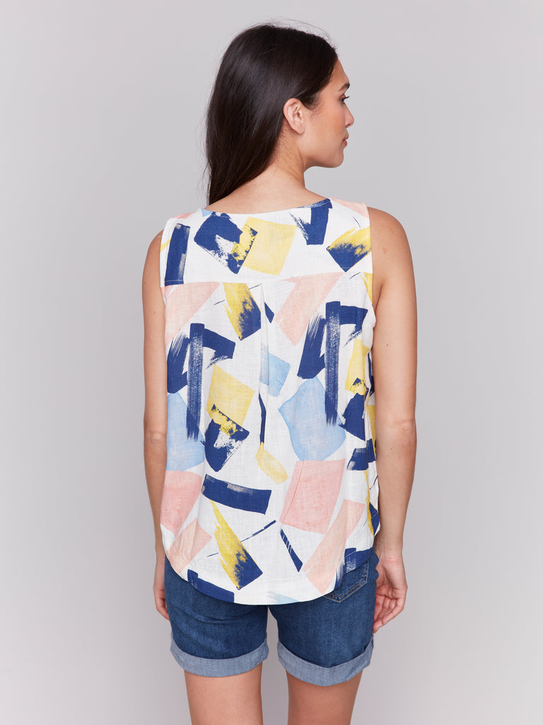Sleeveless Print Top With Rounded Hem